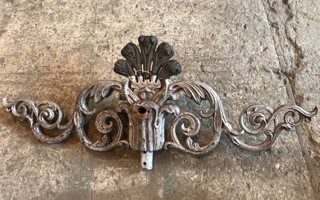 Some of the decorative arms were in such a poor state it wasn't considered viable to repair them so the best arms were used as a mould to cast new arms. Other casting deficiencies and historic weathering and damage were repaired. No makers marks or other distinguishing feature were found other than bench marks.